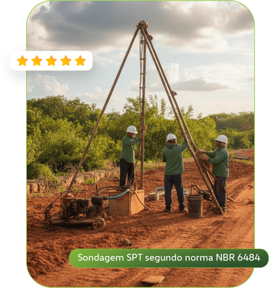 Com ela, identificamos a resistência, camadas do terreno e o nível do lençol freático, garantindo um laudo confiável para obra.